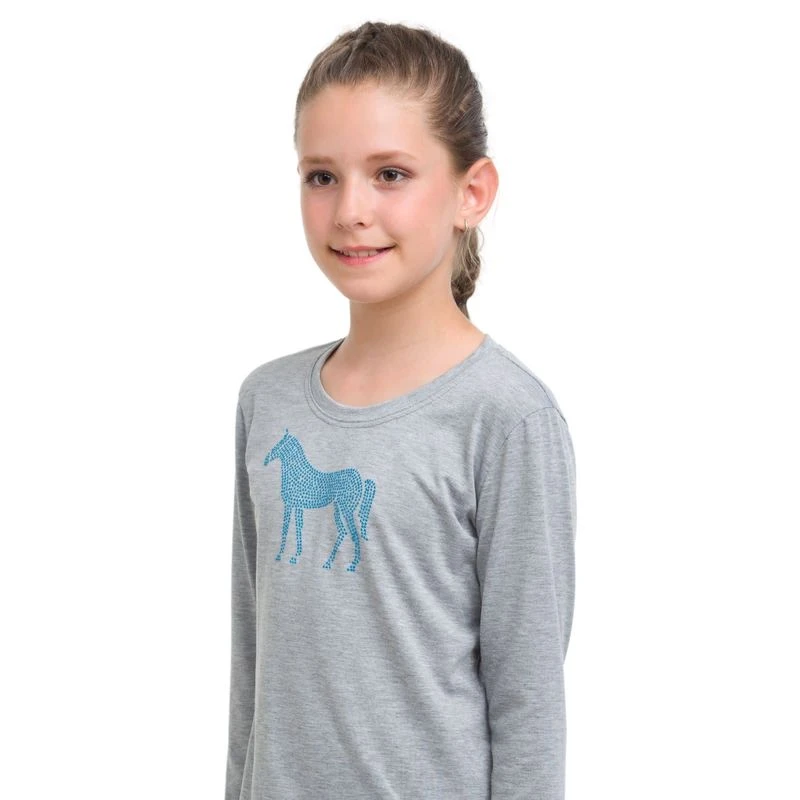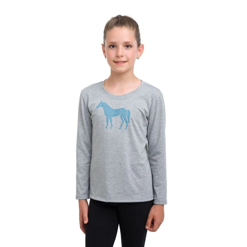 Natural fibers provides comfort and durability. Shine in this beautiful t-shirt, wherever you are in the stable or in the school! It features a crew neck and cap sleeves, finished with blue crystal horse decoration on the chest.