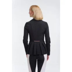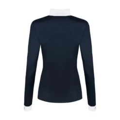 The one-sided raglan-style sleeve, contrasted color piping and branding unites elegance and technology. Built with superior performance materials, wear it for competition. It features a timeless design and athletic functionality which appeals to riders of any discipline. Wear this extra feminine equestrian show shirt and be a true Dame.