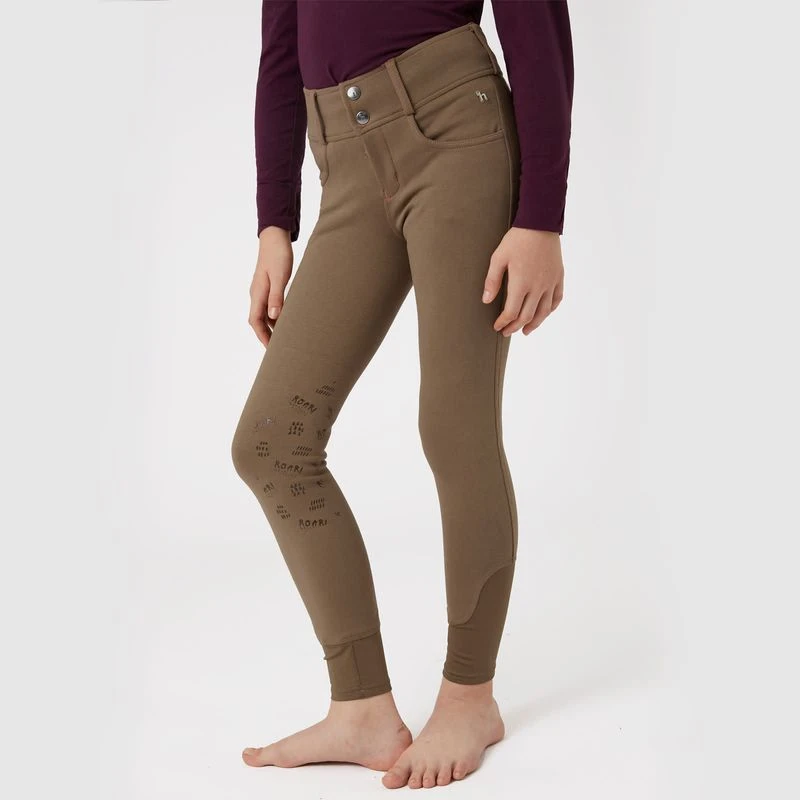 Horze Morgan knee patch breeches for kids are made with grippy silicone that provides flexibility in the saddle.