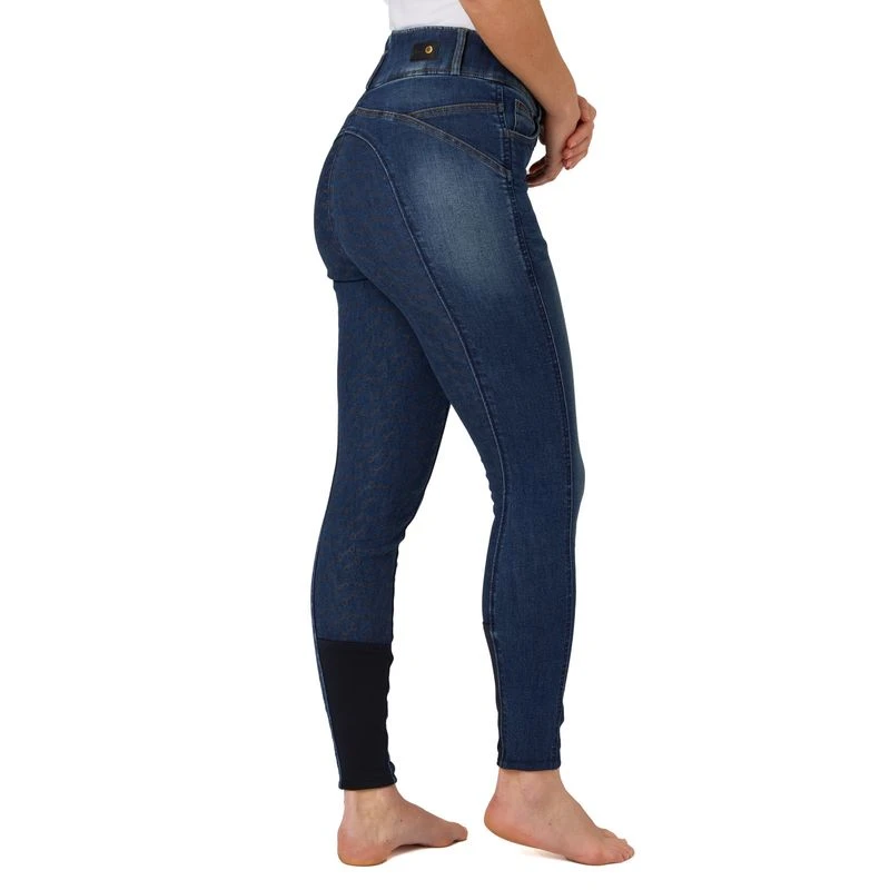 Horze Cecilia breeches will become your new favorite jeans breeches. SIlicone full seat keeps you safely in the saddle. The high waist holds the breeches in place and flatters your figure. Denim material is soft and looks stylish. Special stitching details in the back provide a stunning shape. Wear them with your favorite training shirts and jackets, or with a t-shirt and a hoodie in your free time.