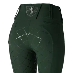 The Horze Kaitlin Breeches are made from soft, stretchy 88% polyester and 12% elastane material. Front pockets with zippers keep your phone safe. The back pockets are embroidered with silver leaves matching the floral silicone knee patches. Muted colors fit your riding wardrobe perfectly.