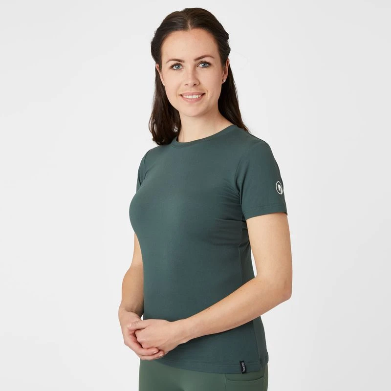 The functional Horze Lily t-shirt is made from breathable material with extra mesh panel at the back for additional ventilation. Soft fabric feels comfortable on your skin. Stylish colors and an easy fit can be combined with all your favorite breeches and riding tights. Also available as maternity version.