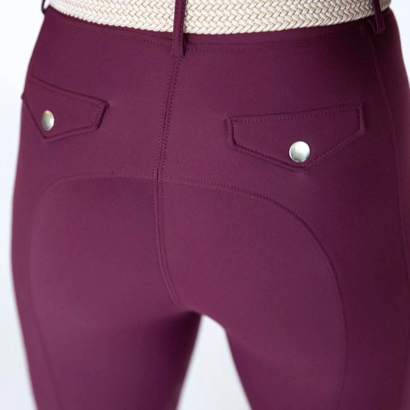 Features faux front fly, proper waistband with belt loops, keeping your belt from sliding up, and deep side pockets for phones and more. Subtle reflective silver logo prints. Elongated silicone knee grip in a quiet print, making both riders and trainers happy and great for keeping you in the saddle.